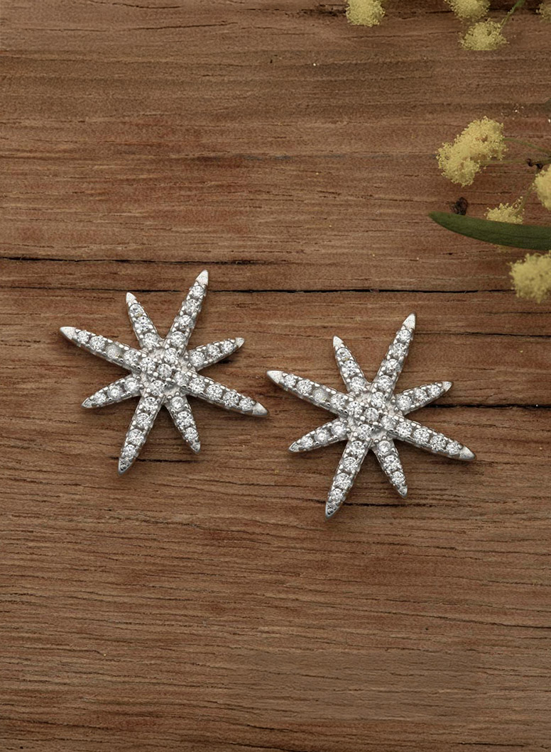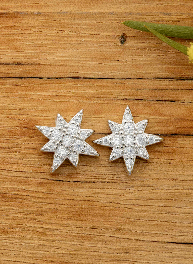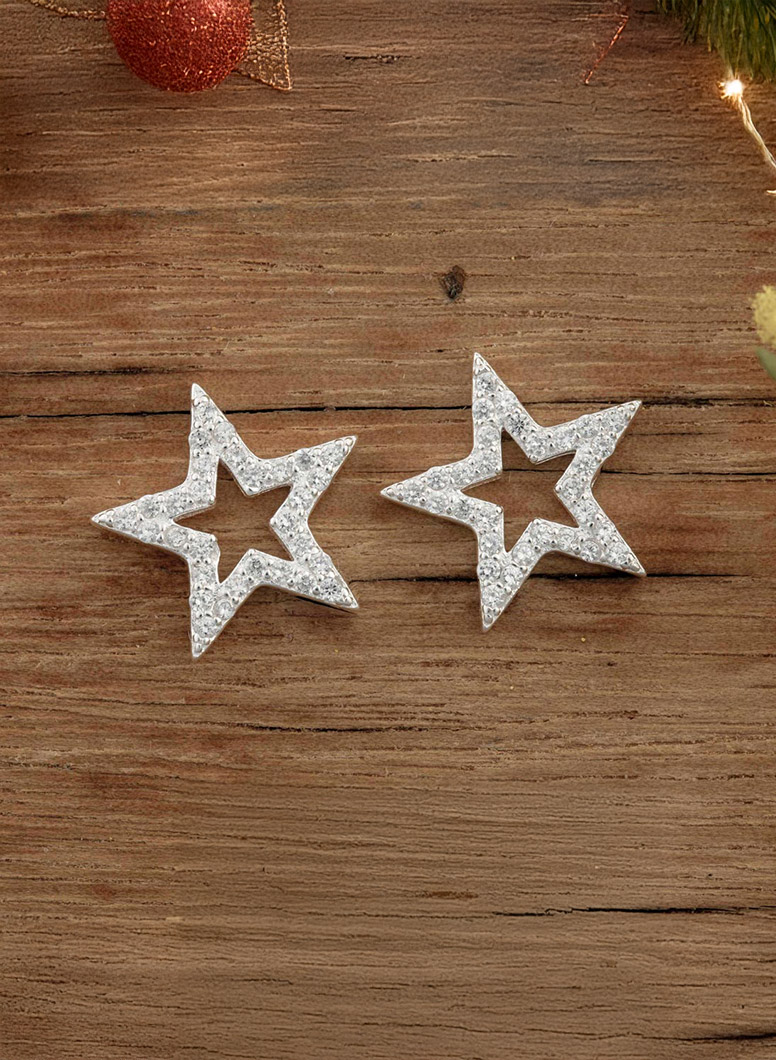 Sterling Silver Stars Push-back Earrings Decorated with CZ Simulated Diamonds ... Show more
