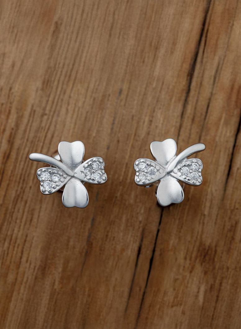 Sterling Silver Butterfly Push-back Earrings Decorated with CZ Simulated Diamond ... Show more