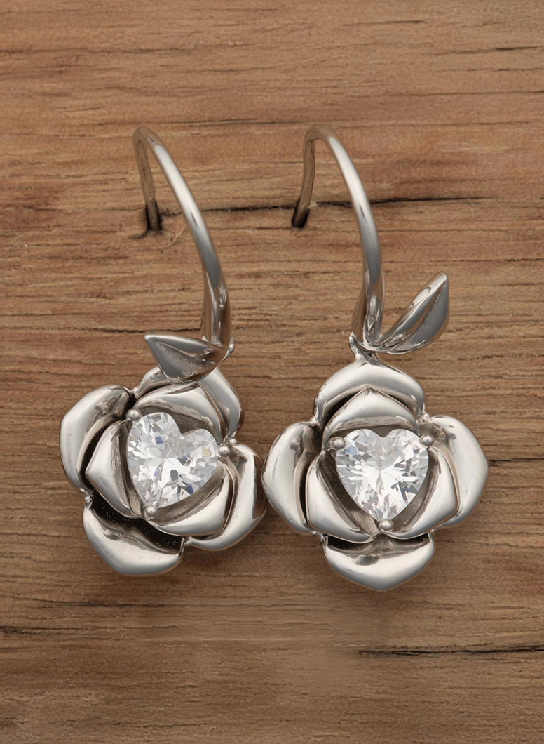 Sterling Silver Flower &Heart Hook Earrings Decorated with CZ Simulated Diamonds ... Show more